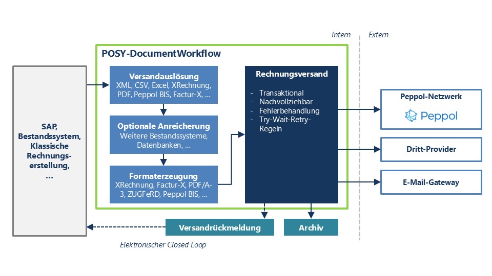 Damit fügt sich POSY nahtlos in bestehende Prozesse ein, ohne umfangreiche Änderungen an der bestehenden Rechnungsverarbeitung vornehmen zu müssen.